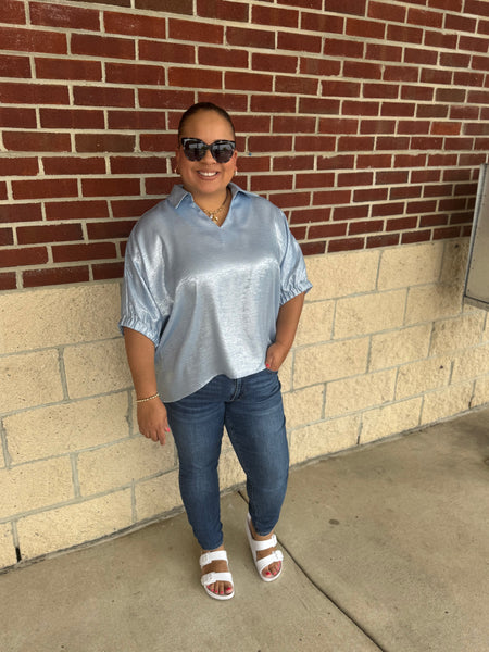 Long Sleeve Satin Top with Back Keyhole Out of stock SALE