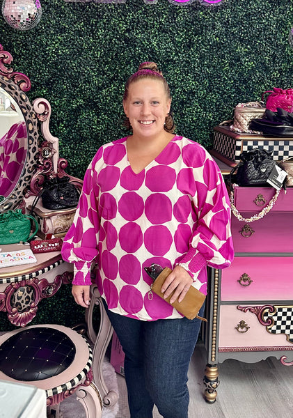 Long Sleeve Polka Dot V-Neck Top Out of stock