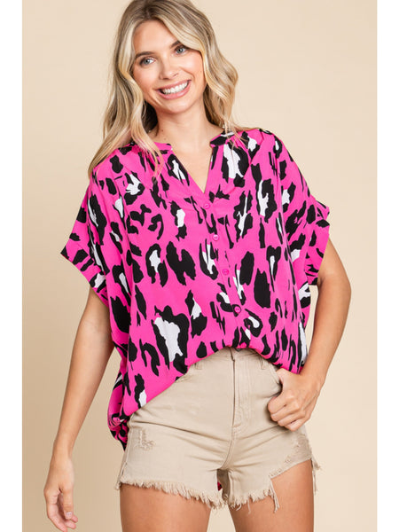 Leopard Print Short Sleeve U-neck Top Out of stock
