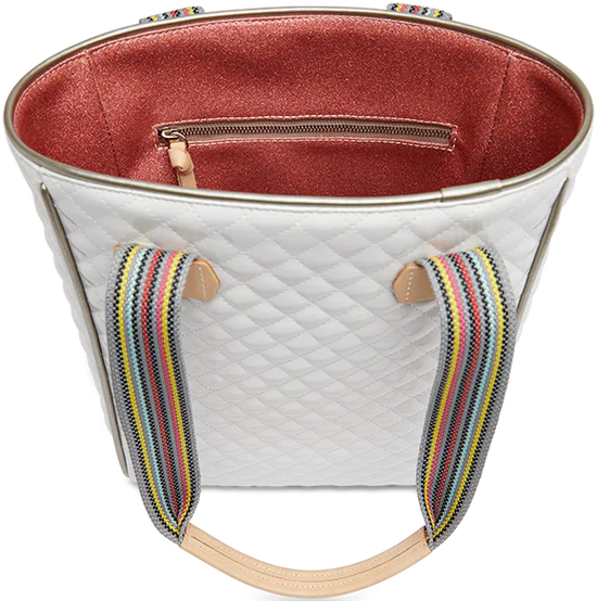 For the love of the Classic Tote, and the need for the essentials: the Chica Tote is a smaller version of our all-time favorite Classic Tote. Holding its shape and keeping things light, this colorful embroidered bag is ideal for the everyday haul.