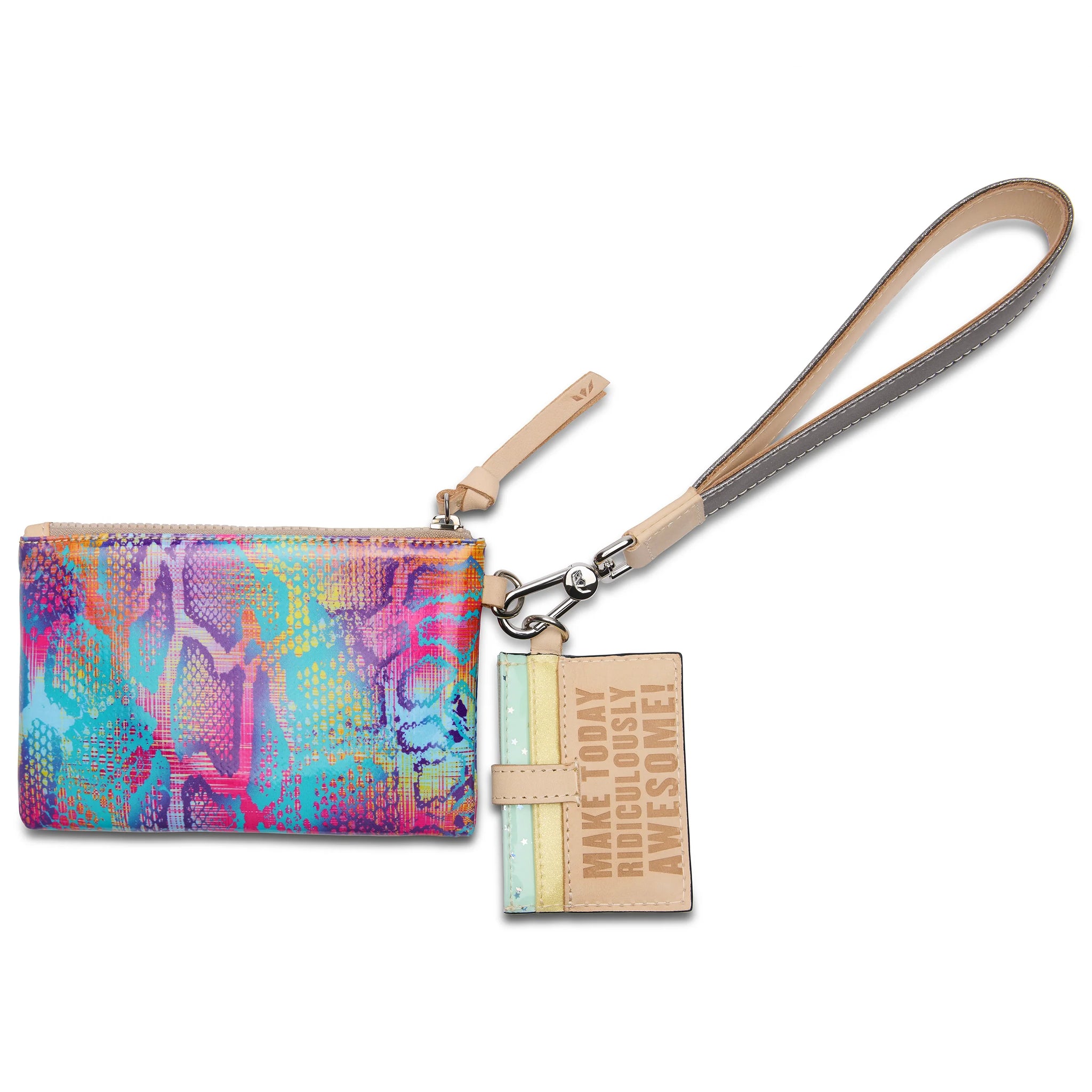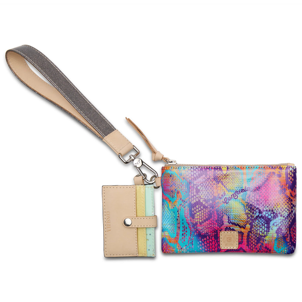 The Combi, a combination of on-the-go accessories, is a new way to carry your keys, cards, and the small stuff together or separately. This colorful wristlet wallet includes a pocket pouch, secure card slot wallet and fits comfortably around your wrist - ready for your next journey.