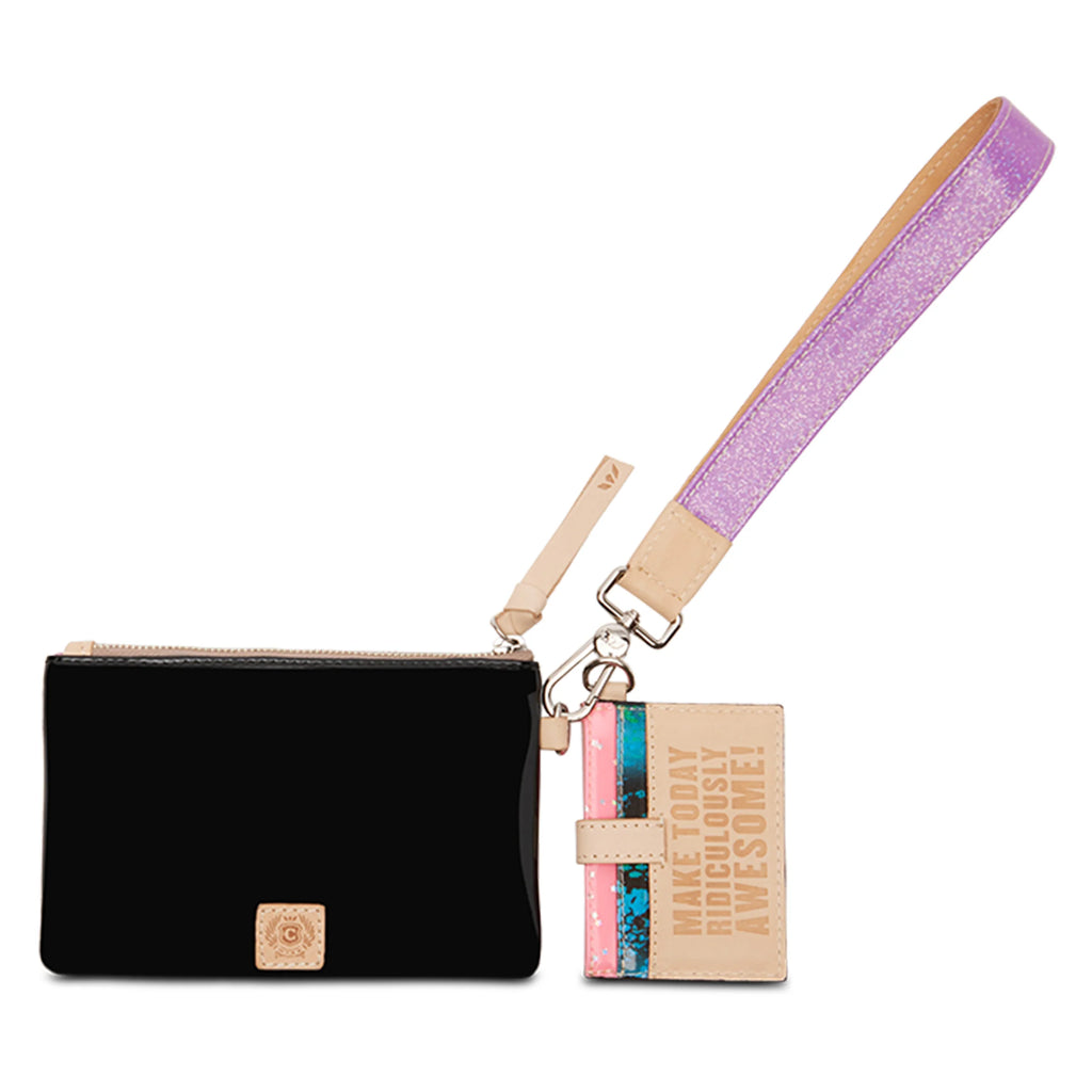 The Combi, a combination of on-the-go accessories, is a new way to carry your keys, cards, and the small stuff together or separately. This embroidered wristlet wallet includes a pocket pouch, secure card slot wallet and fits comfortably around your wrist - and this collection is the first time we have featured embroidery on a Combi!