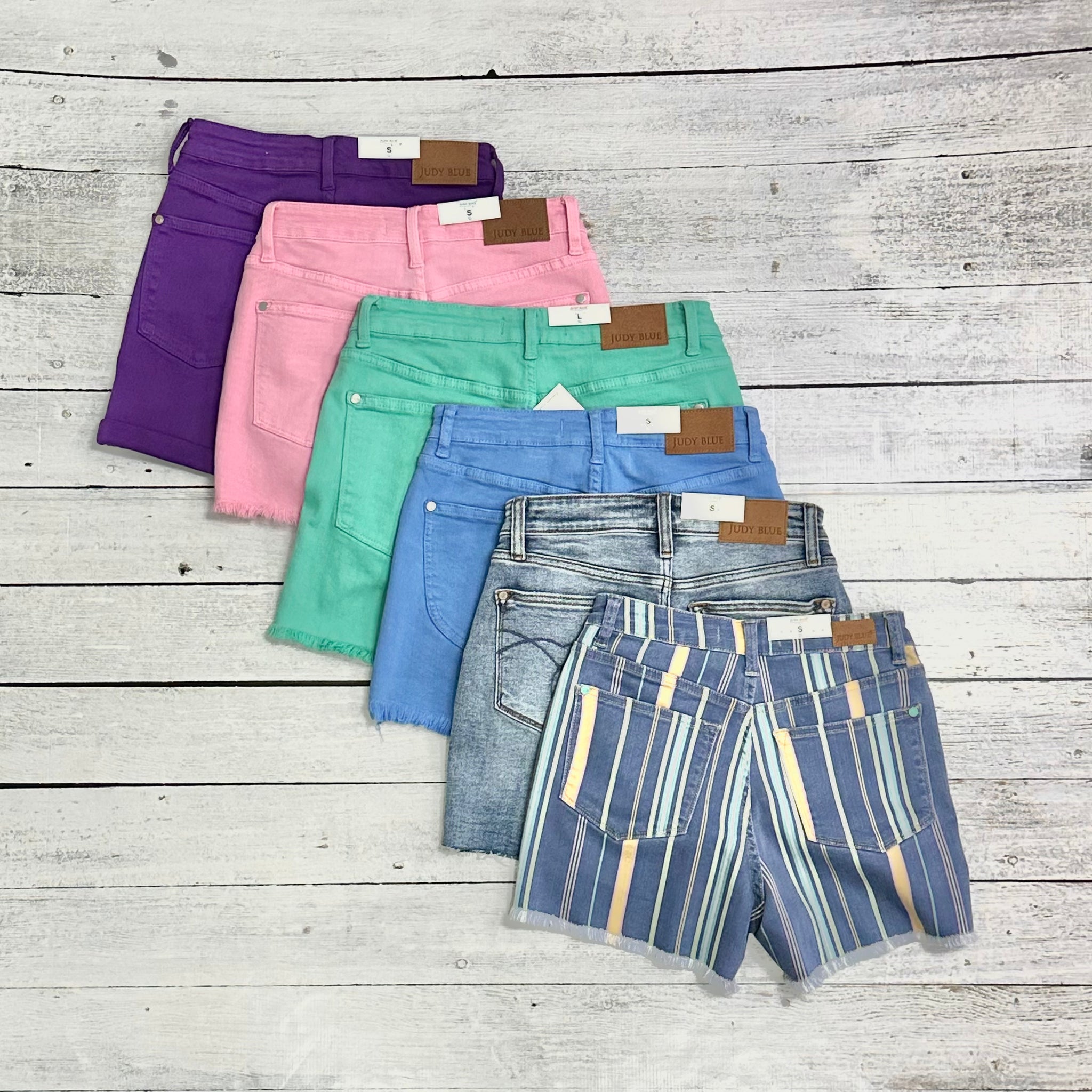 Judy Blue Aquamarine Medium Rise Fray Hem Shorts