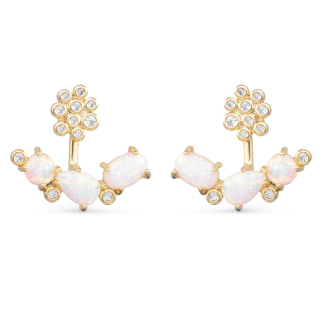 Gold CZ & Triple Opal Jacket Earrings