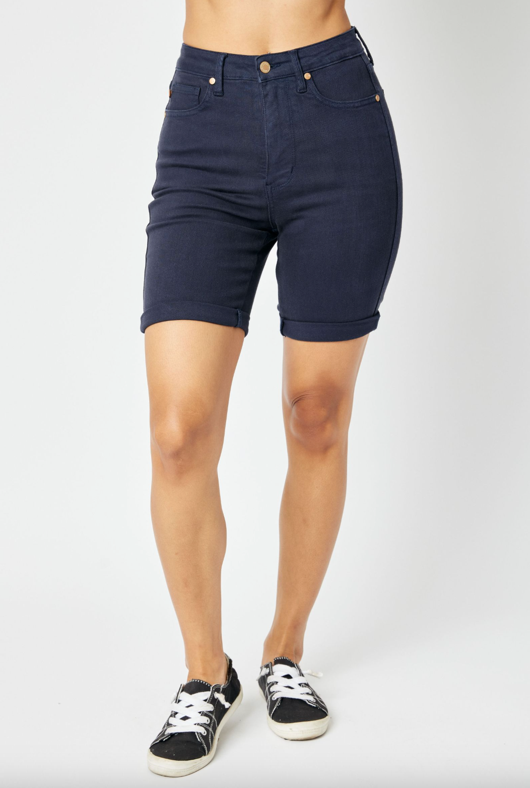 Judy Blue Navy High Waist Tummy Control Bermuda Shorts