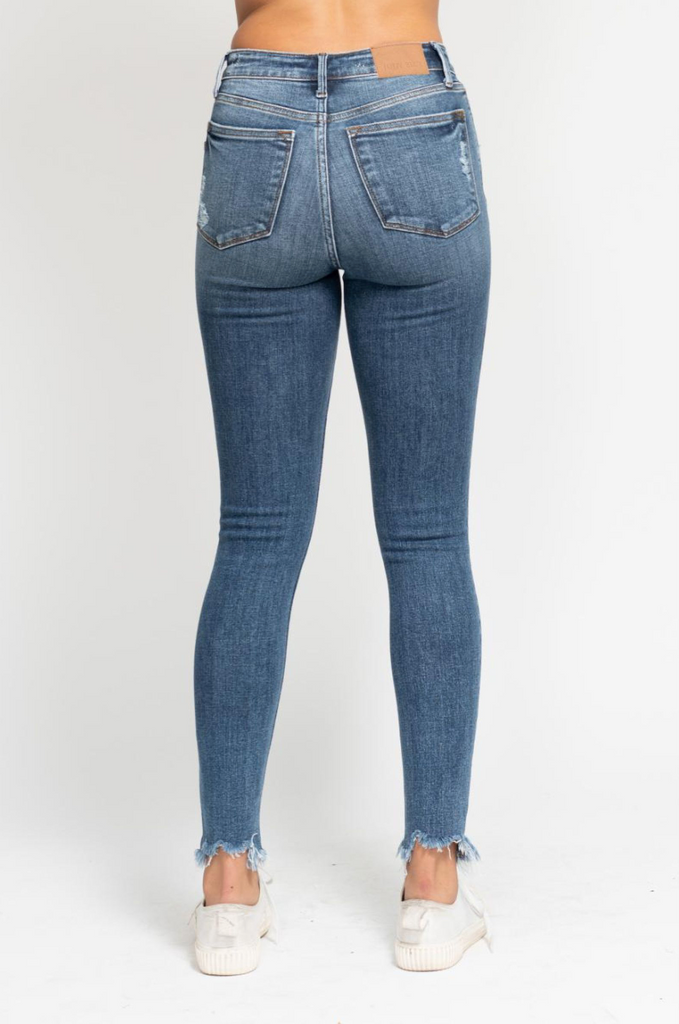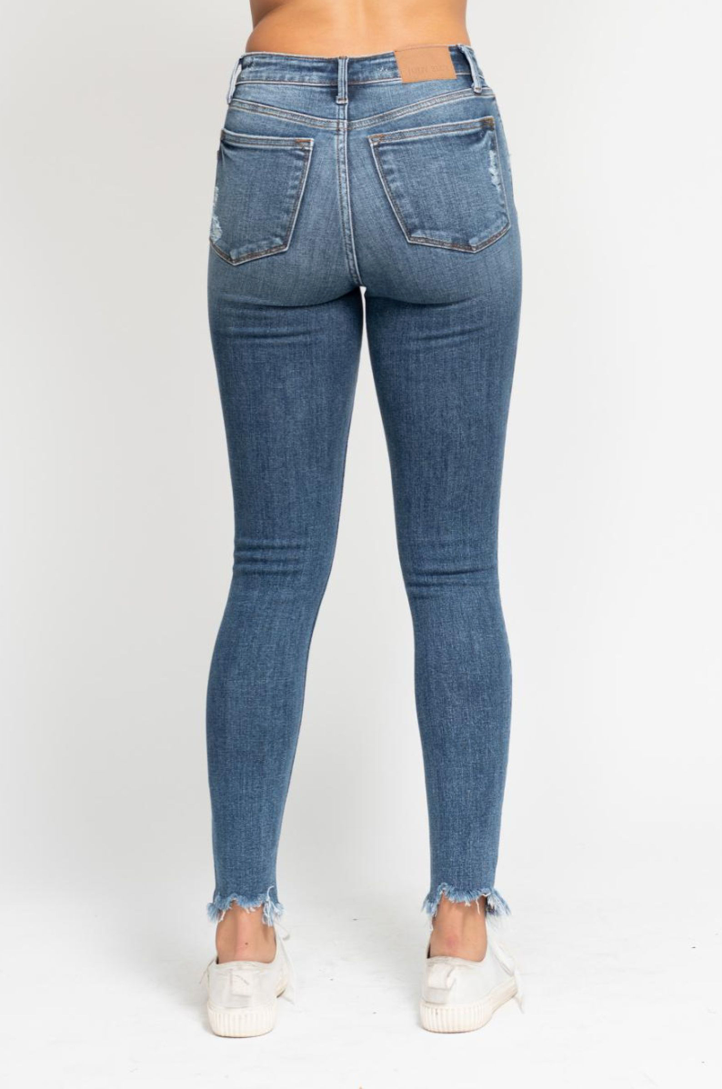 Judy Blue High Waist Skinny Destroyed Jeans with Shark Bite Hem