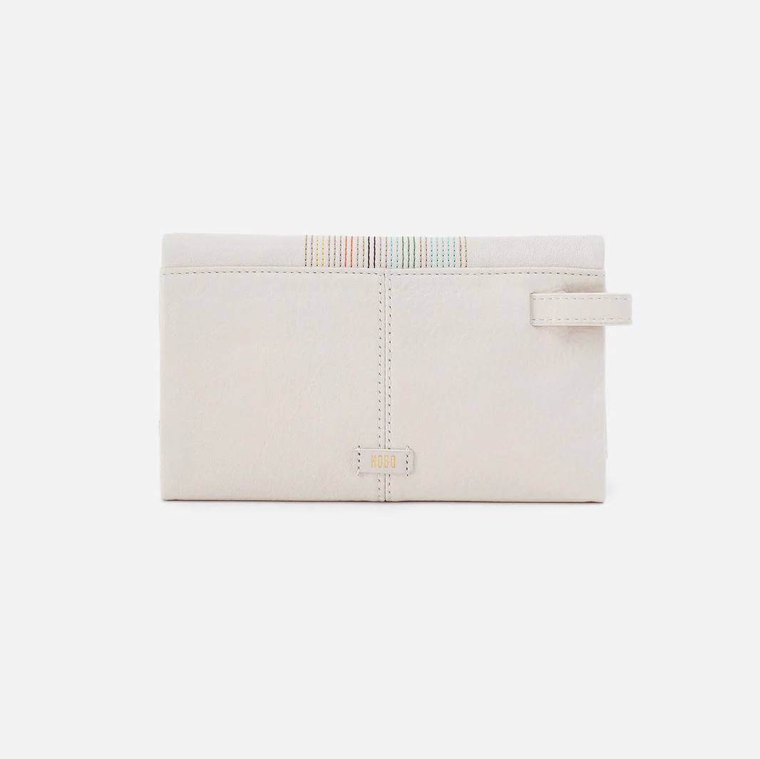 Keen has a soft structure and organized interior, plus an optional wristlet strap and artisanal whipstitch details.