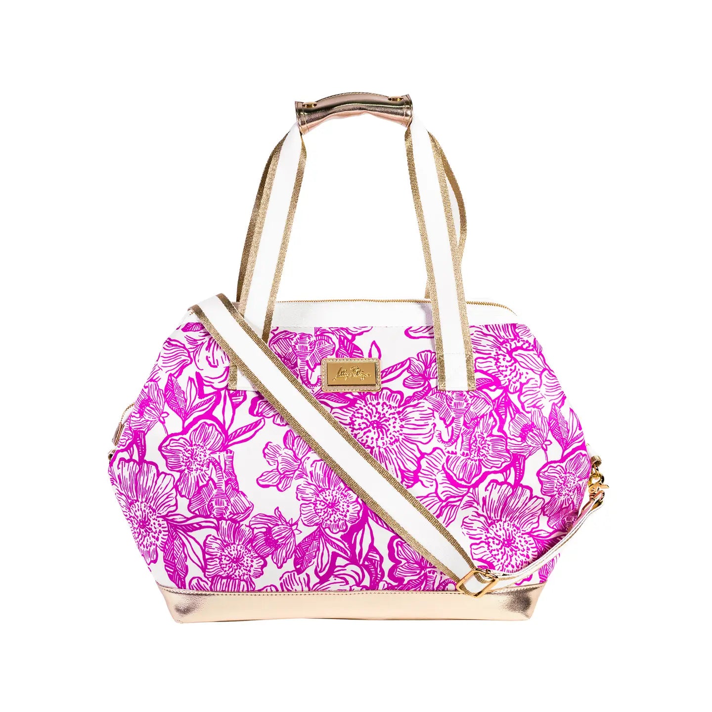 Make every lunch break or beach picnic effortlessly chic with our neoprene cooler in the vibrant Unforgettable Pink pattern. Designed with a structured wire frame opening for easy loading and unloading, this cooler features a secure zipper closure, gleaming gold accents, long handle straps, and an adjustable crossbody strap for grab-and-go convenience. Whether you're packing lunch for the office or chilled snacks for a seaside escape, this stylish and functional cooler keeps everything cool while adding a bold pop of coastal charm.