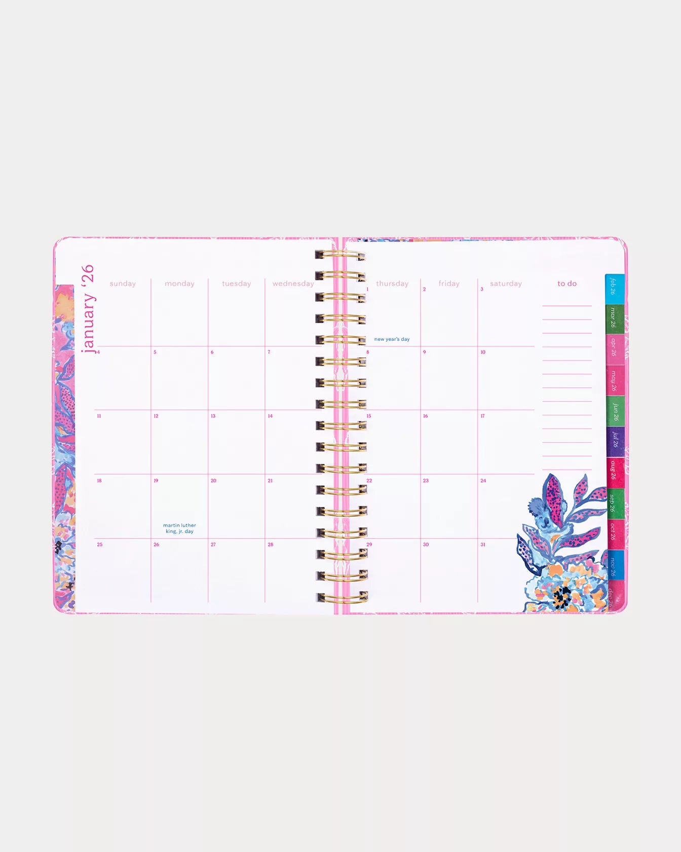 - 17 month large agenda (August 2025 - December 2026) complete with gold details and hand painted interior art.