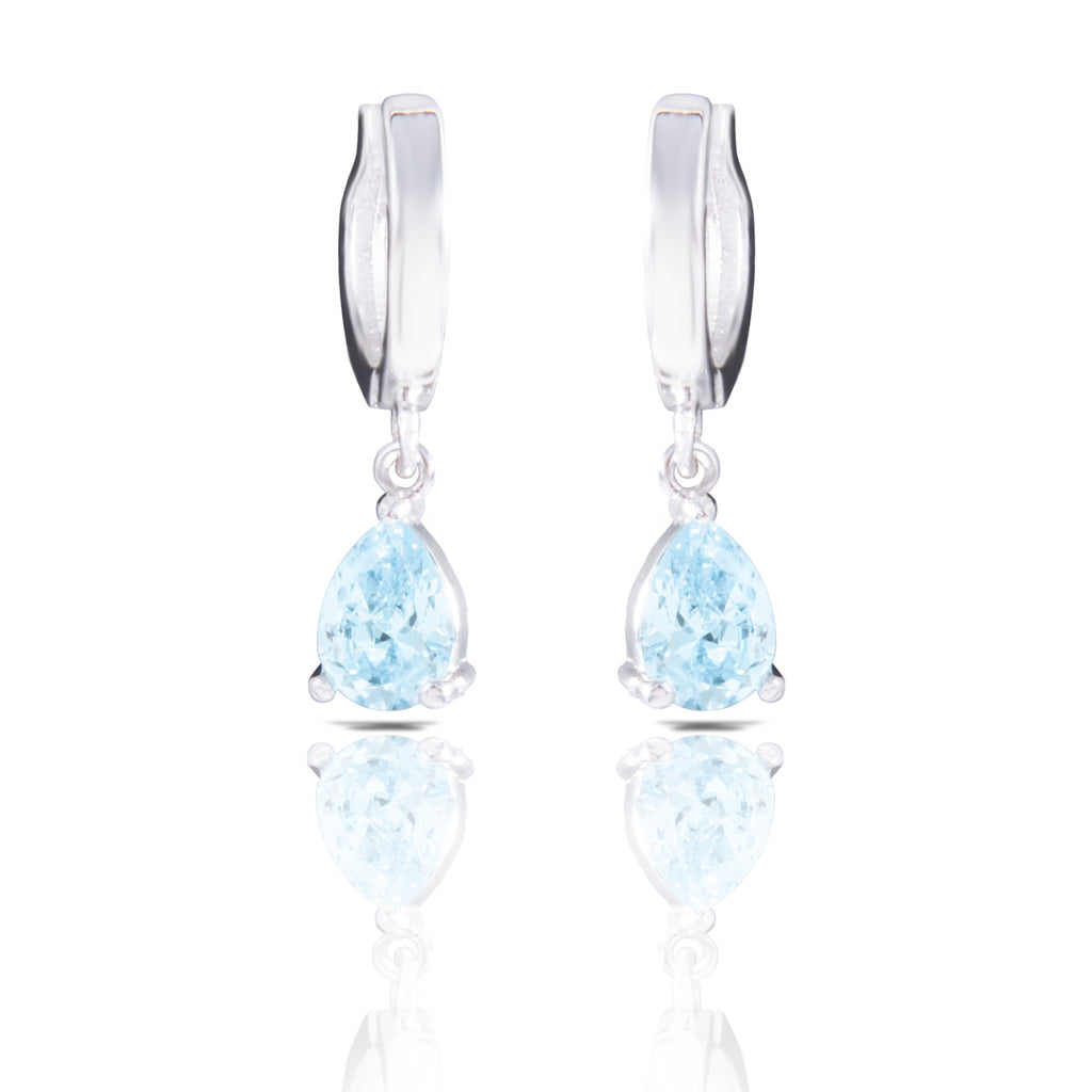 Silver Aquamarine CZ Pear Drop Huggie Earrings