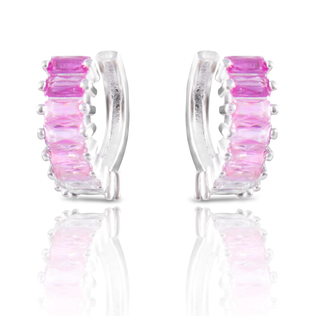 Silver Pink Ombre Baguette CZ Huggie Earrings